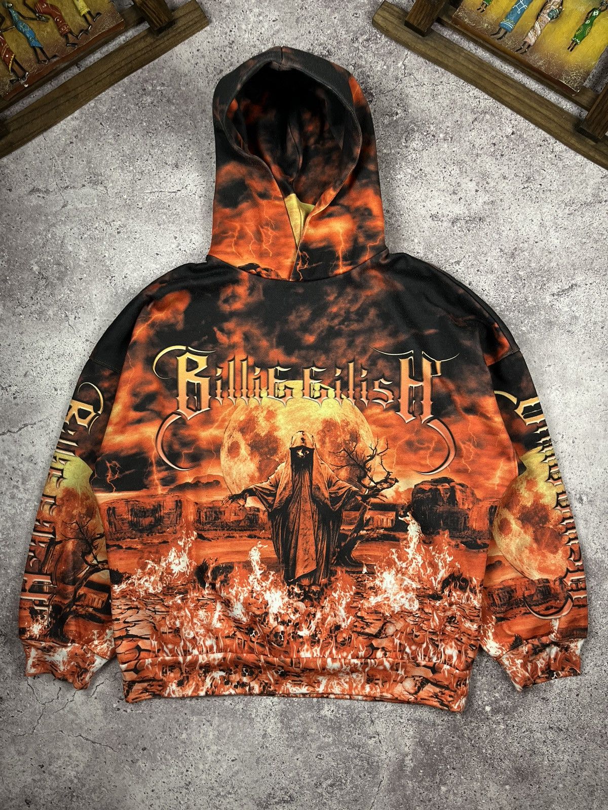 Billie Eilish Unisex Airbrush Flames Blohsh Pullover Hoodie Very well made.
