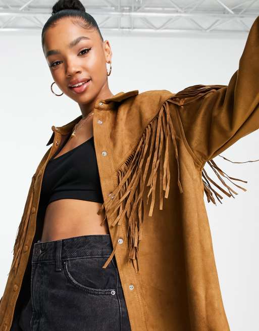 Stradivarius suedette fringed jacket in dark tan ASOS Very well made.