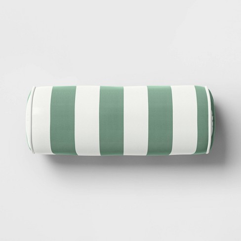 20 x8 Striped Cylinder Outdoor Bolster Pillow with Contrast Piping Green Threshold designed with Studio McGee Very well made.