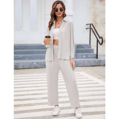 Women Two Piece Casual Outfits Y2k Loungewear Pleated Wide Leg Pants Long Sleeve Button Down Shirt Streetwear Set Target Very well made.