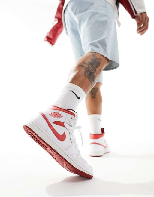 Jordan Air 1 Mid Sneakers alte bianche e rosse Very well made.