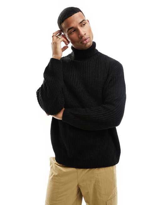 ASOS DESIGN oversized knit essential ribbed polo sweater in black Very well made.