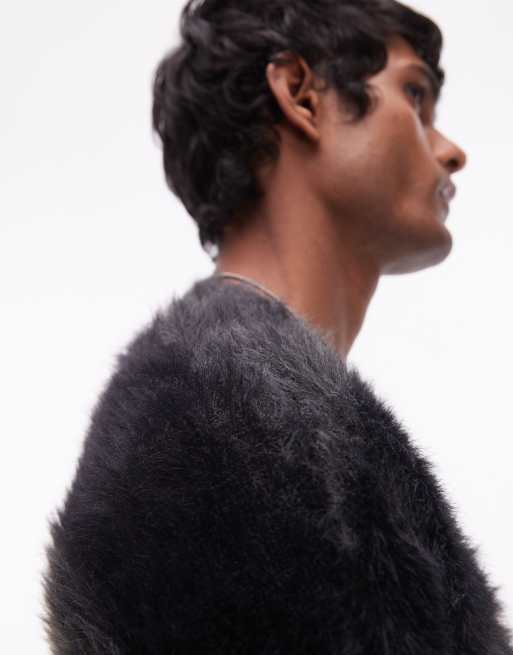 Topman Fluffy Oversized Cardigan in Black Stripe Very well made.