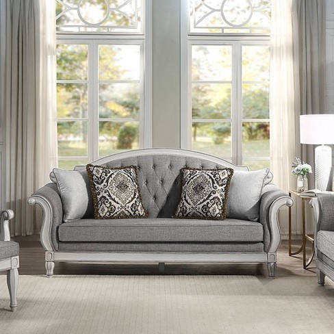 88 Florian Sofa Gray Fabric And Antique White Finish Acme Furniture Leather Upholstery Wood Frame Includes Accent Pillow Target Very well made.