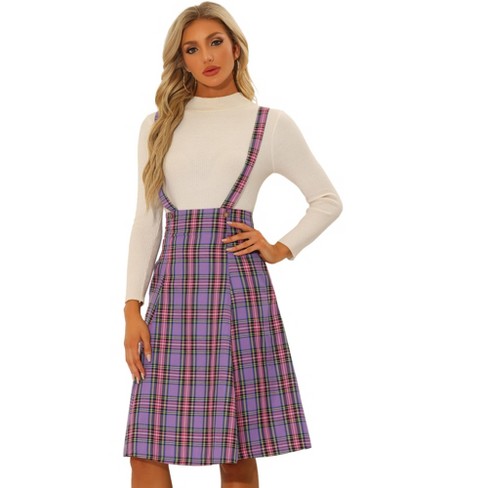INSPIRE CHIC Women s Christmas Plaid Midi Tartan Pinafore Skirt Purple Medium Very well made.