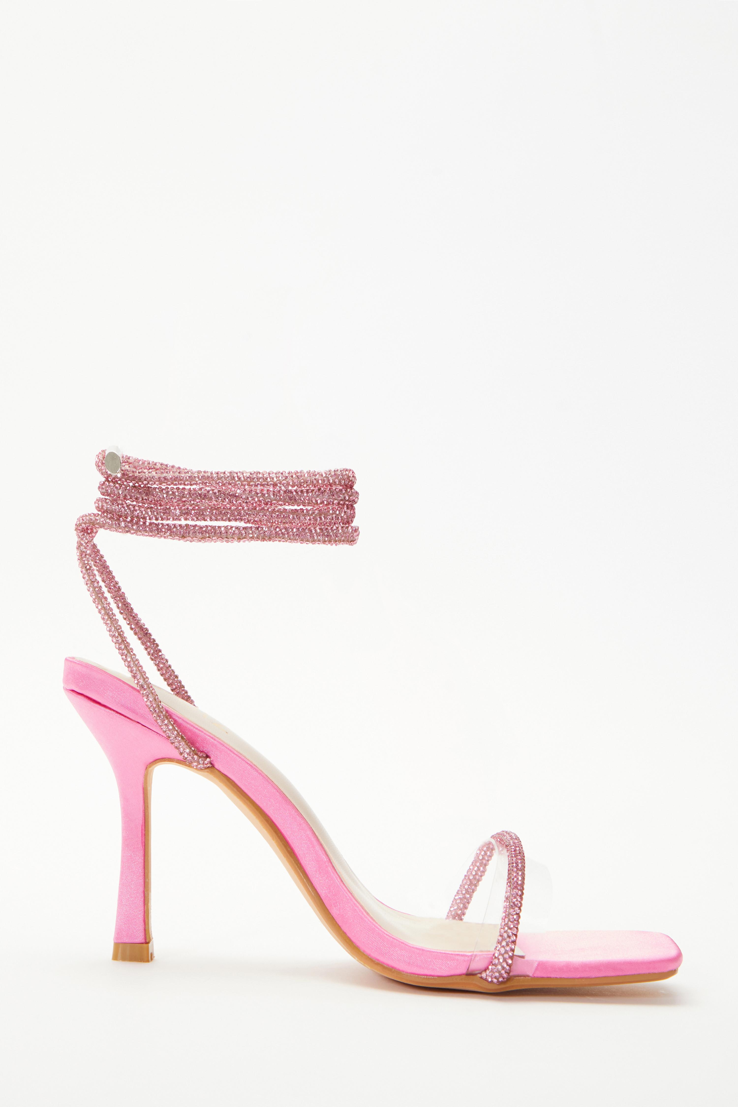Pink Satin Clear Ankle Tie Heeled Sandals QUIZ Clothing Very well made.