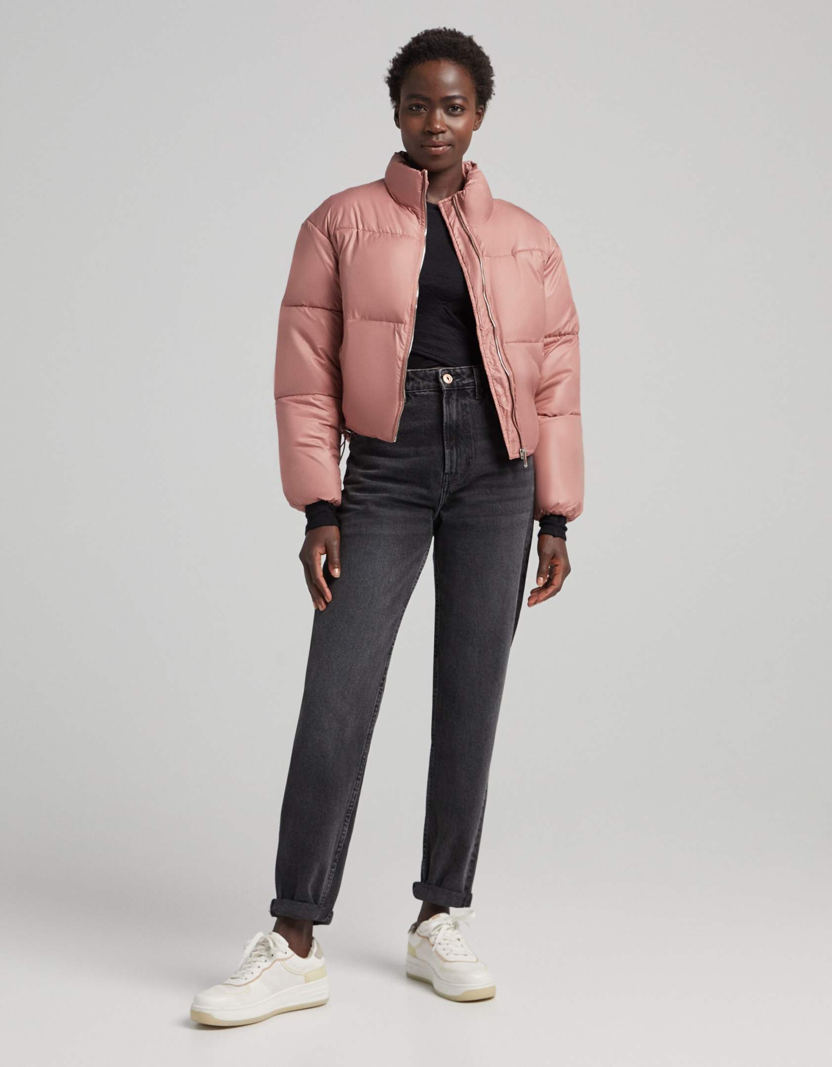 Bershka cropped puffer jacket in pink ASOS Price Checker Very well made.