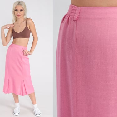 Vintage 80s Pleated Swing Skirt Large Pink Tea Length Midi Sought Clothier Boston MA Very well made.