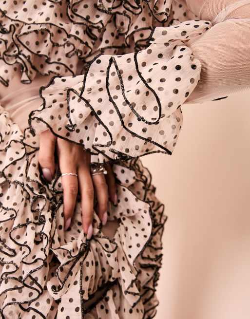 ASOS LUXE organza exaggerated ruffle polka dot mini dress in blush pink Very well made.