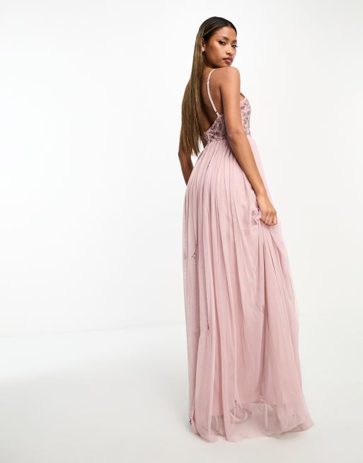 Beauut Bridesmaid cami 2 in 1 maxi dress with embellished top and tulle skirt in frosted pink ASOS Very well made.