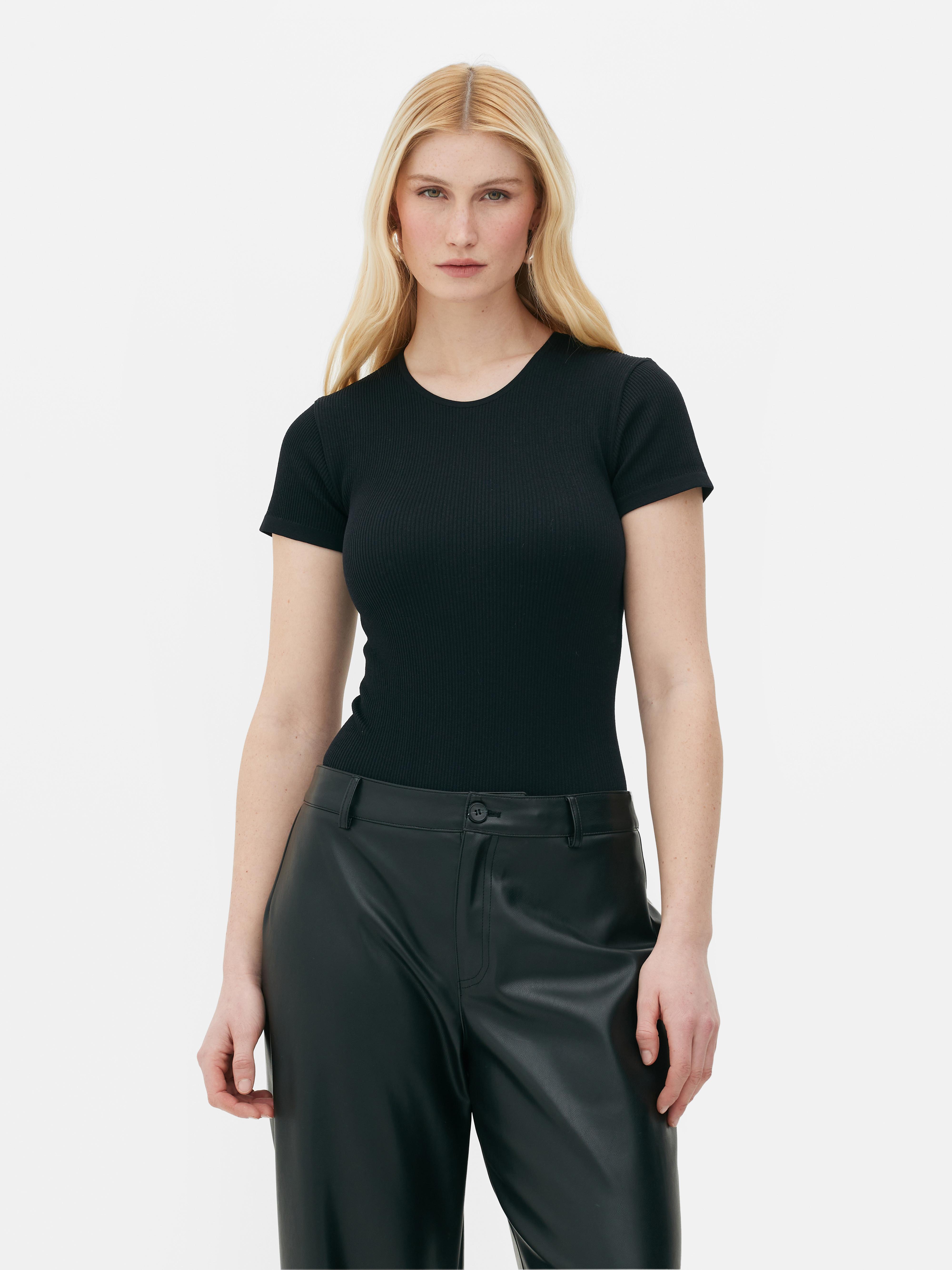 Women s Black Seamless Ribbed T Shirt Bodysuit Penneys Very well made.