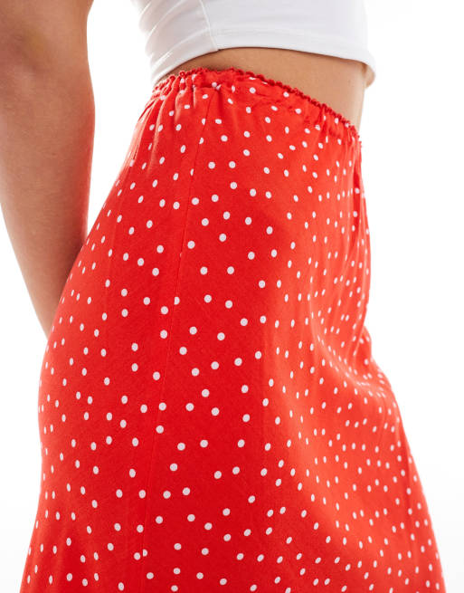 Miss Selfridge Petite picot trim bias maxi skirt in red polka dot Very well made.