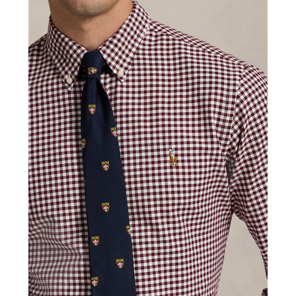Custom Fit Gingham Oxford Shirt In Wine Very well made.