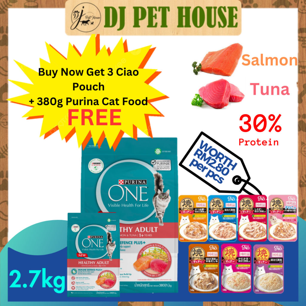 PROMO Purina One Cat Dry Food Healthy Adult with Salmon Tuna 2.7kg FREE 380g Ciao Pouch Makanan Kucing Very well made.