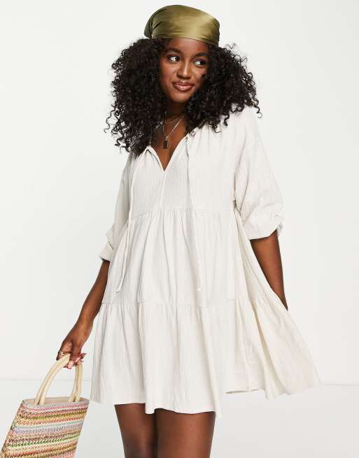 Pull Bear Robe babydoll courte en coton a manches longues et volants Naturel ASOS Very well made.