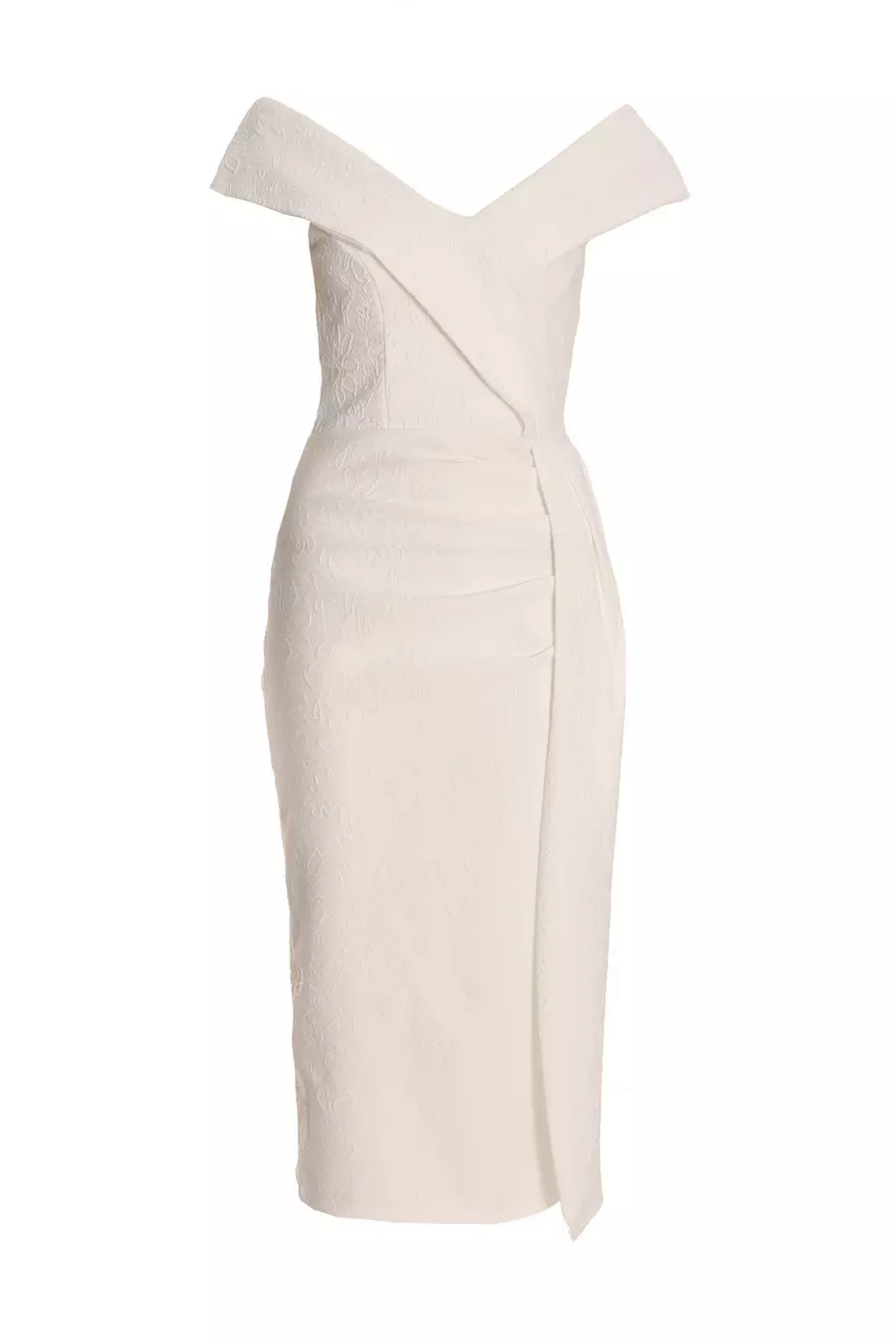 White Jacquard Bardot Ruched Dress QUIZ Clothing Very well made.