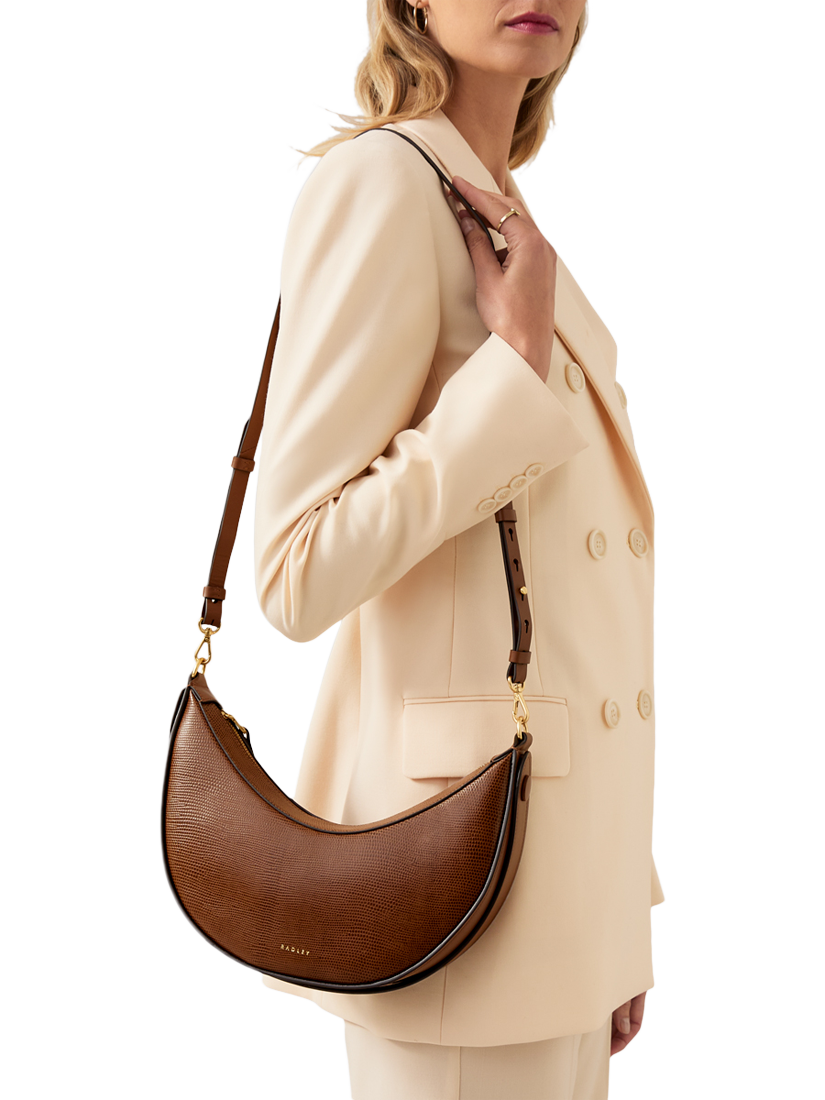 Radley The Kensal Lizard Effect Leather Small Zip Top Shoulder Bag Saddle Very well made.