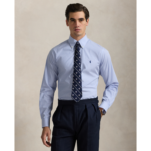 POLO Ralph Lauren Poplin Dress Shirt Men s Classic Fit Easy Care Blue Stripe Very well made.