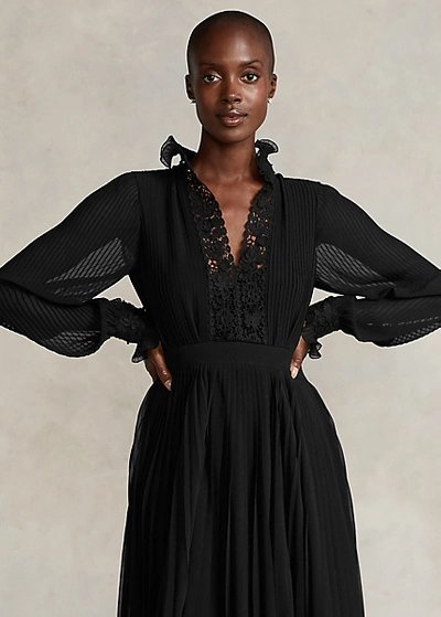 Polo Ralph Lauren Lace trim Pleated Georgette Dress In Polo Black ModeSens Very well made.