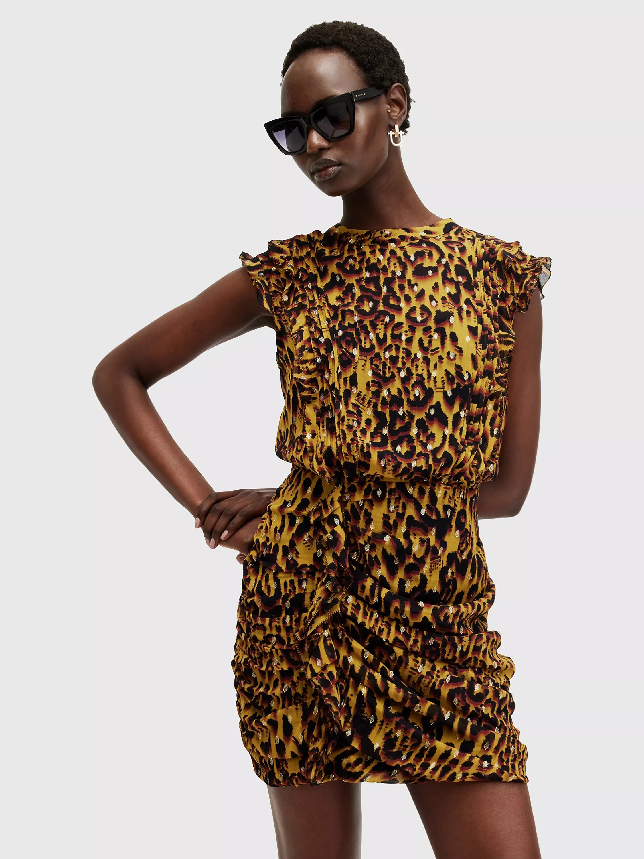 AllSaints Hali Animal Print Dress Yellow Multi Very well made.