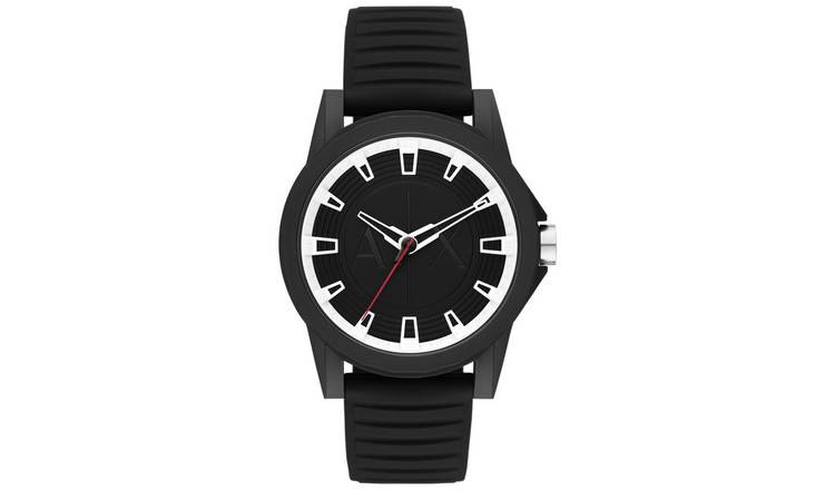 Buy Armani Exchange Analogue Display Black Silicone Strap Watch Men s watches Argos Very well made.