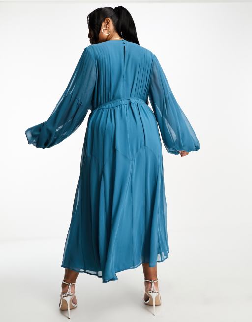 ASOS DESIGN Curve wrap balloon sleeve midi dress with tie waist detail in teal ASOS Very well made.