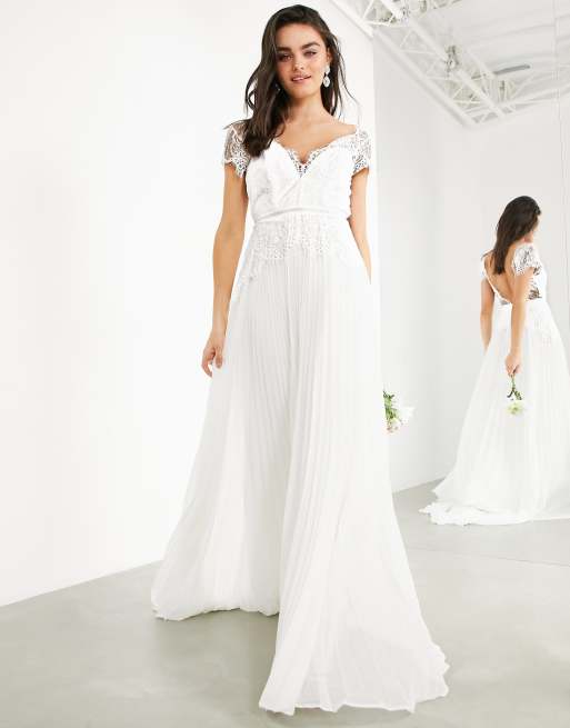 ASOS DESIGN Sophia plunge lace wedding dress with pleated skirt Very well made.