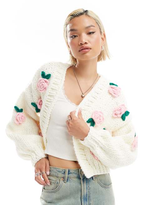 Glamorous boxy knitted luxy chunky cardigan with applique rose detail ASOS Very well made.