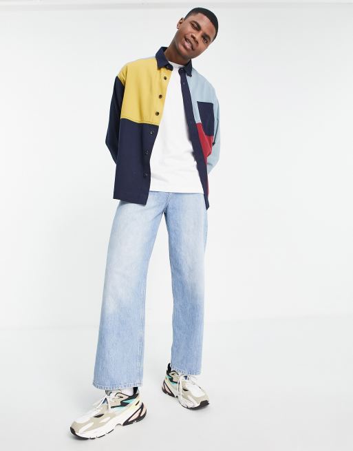 ASOS DESIGN boxy oversized denim shirt in colour block Very well made.