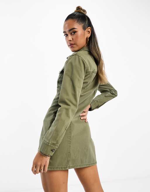 ASOS DESIGN denim fitted shirt dress in khaki ASOS Very well made.
