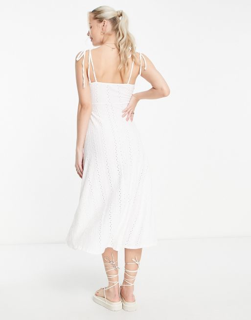 ASOS DESIGN Tall broderie strappy midi tea dress with hook and eye detail in white ASOS Very well made.