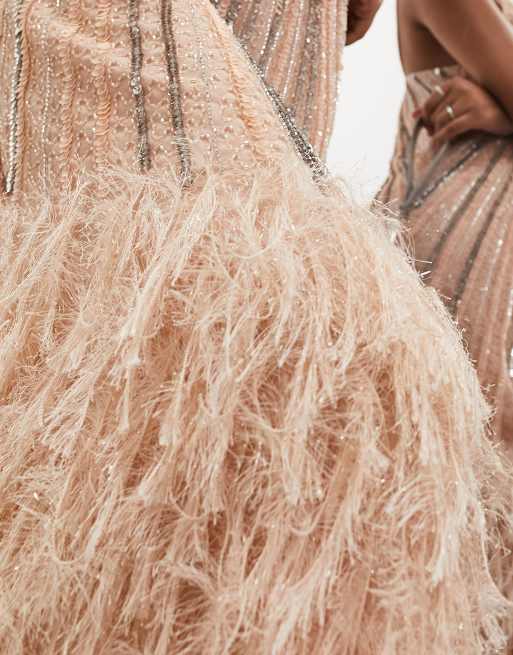ASOS EDITION embellished v neck cami midi dress with faux feather hem in blush pink ASOS Very well made.