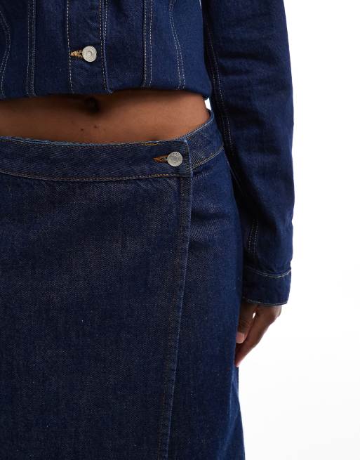 ASOS DESIGN denim awkward length wrap skirt in indigo Very well made.