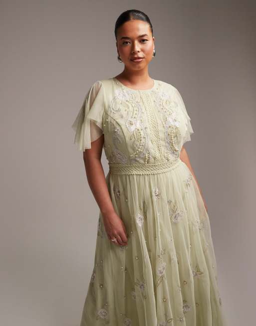 ASOS DESIGN Curve Bridesmaid pearl embellished flutter sleeve maxi dress with floral embroidery in rose ASOS Very well made.
