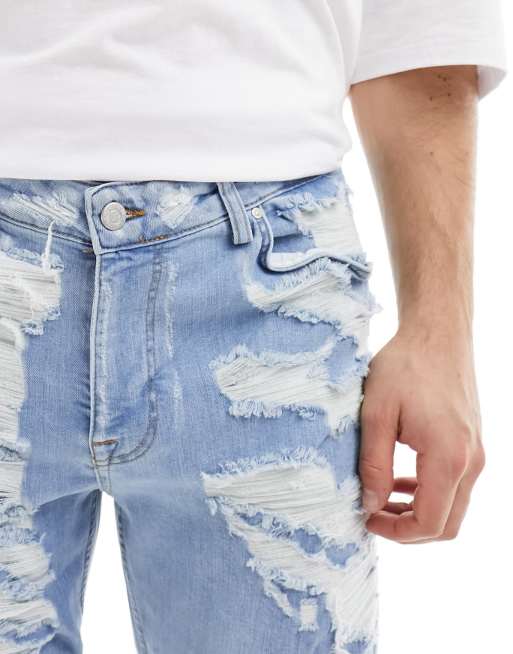 ASOS DESIGN skinny jeans with heavy rips in light wash blue ASOS Very well made.