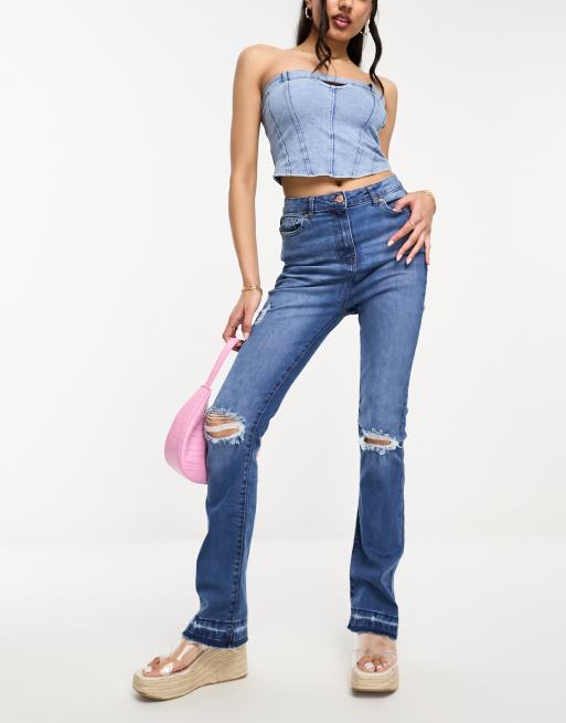 ASOS DESIGN skinny jeans in mid wash blue with heavy rips Very well made.