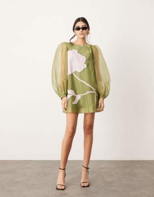 ASOS EDITION applique floral volume sleeve A line mini dress in olive ASOS Very well made.