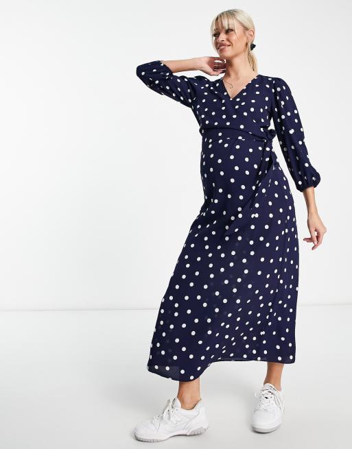 ASOS DESIGN Maternity nursing wrap midi dress in navy spot Very well made.