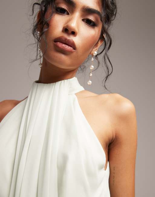 ASOS DESIGN Bridesmaids grecian draped halter maxi dress in sage green Very well made.