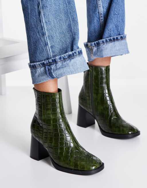 ASOS DESIGN Revival round toe block heeled boots in green Very well made.