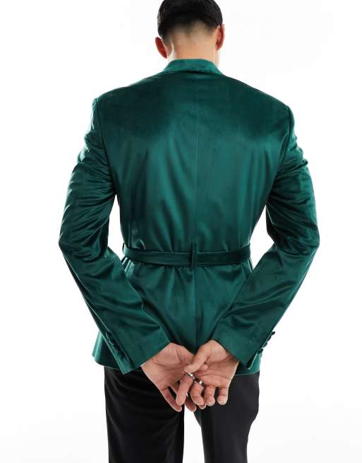 ASOS DESIGN super skinny smoking jacket in dark green velvet with belt ASOS Very well made.