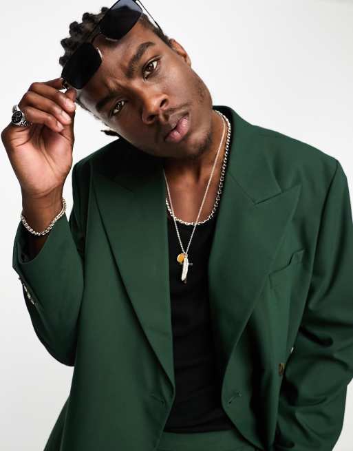 ASOS DESIGN slim deep wrap suit jacket in dark green Very well made.