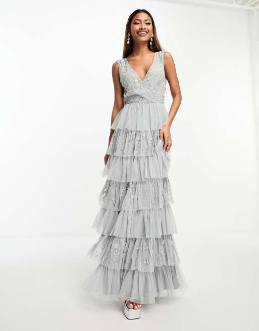 Beauut Bridesmaid tiered midaxi dress with embroidery in light grey Very well made.