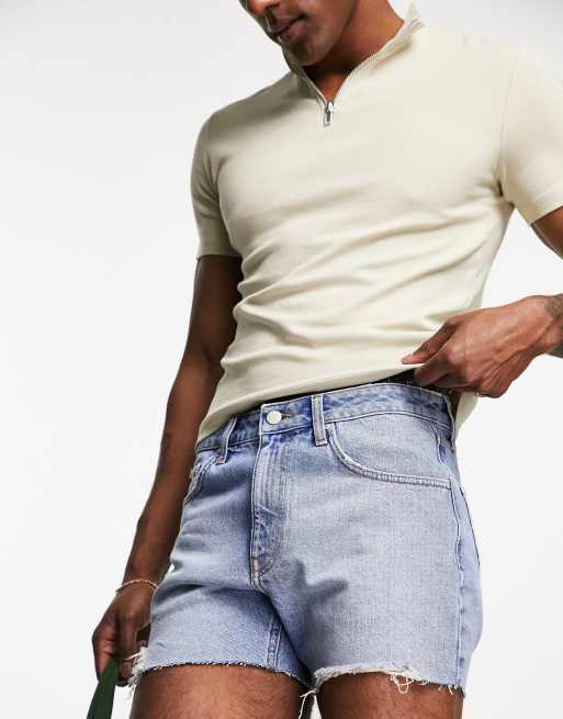 ASOS DESIGN slim shorter length ripped denim shorts in light blue wash ASOS Very well made.