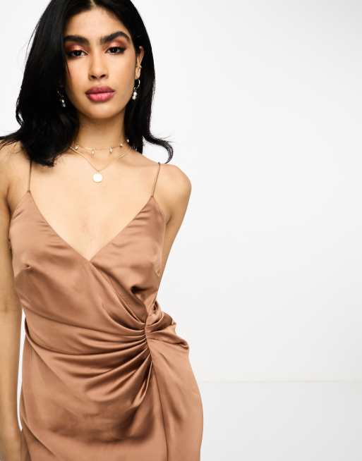 ASOS DESIGN Bridesmaid satin cami maxi dress with drape detail in mocha Very well made.