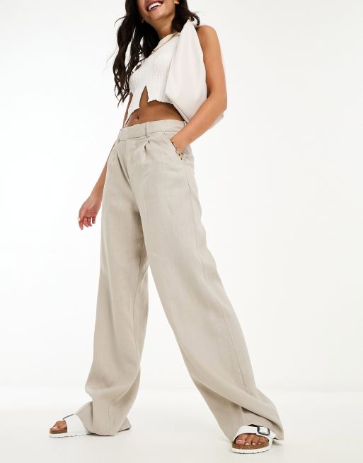 Bershka tie waist wide leg linen trousers in sand Very well made.