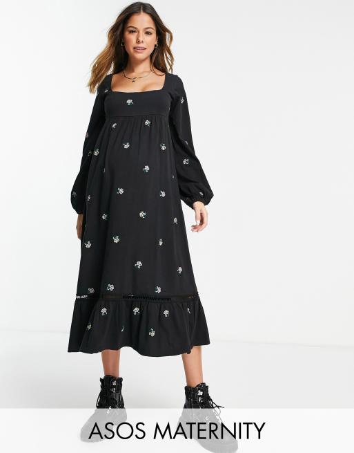 ASOS DESIGN Maternity square neck midi smock dress with all over flower embroidery in black ASOS Very well made.