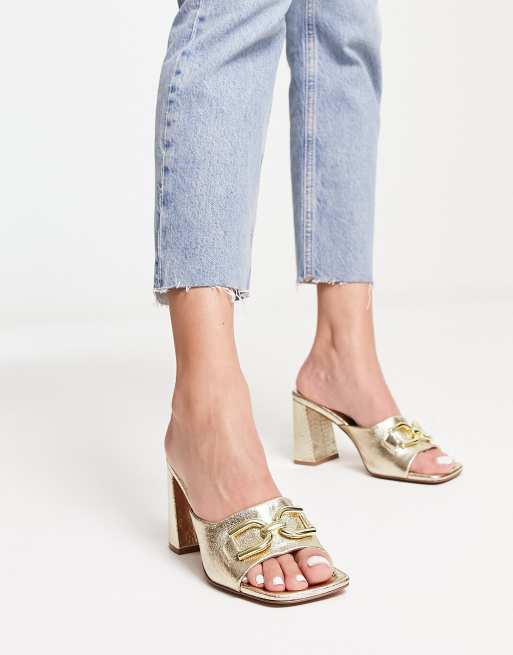 ASOS DESIGN Hush Mules a talon mi haut ornees d un mors Dore ASOS Very well made.