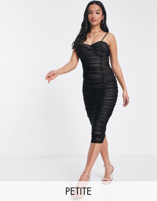 Parisian Petite ruched mesh midi bodycon dress in black Very well made.