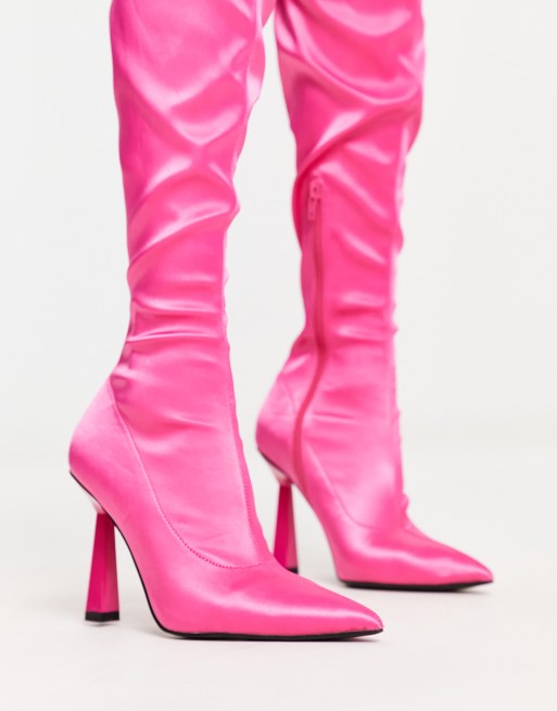 ASOS DESIGN Cleo high heeled knee boots in pink patent Very well made.